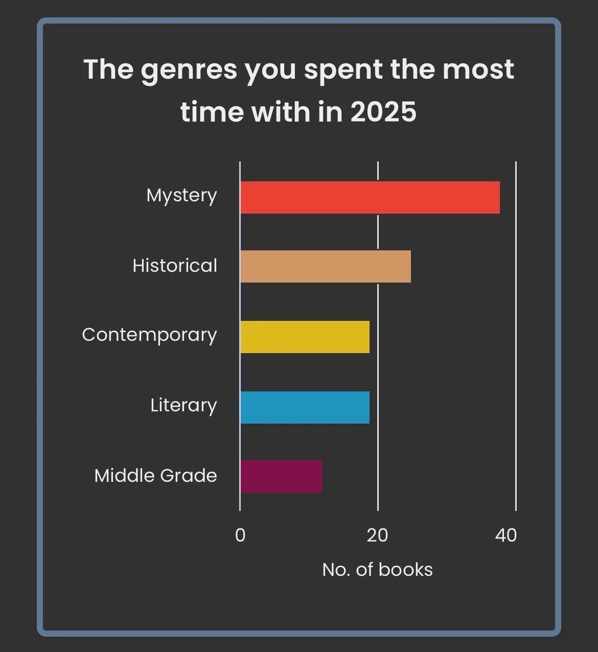 I have been tracking in both Goodreads and The StoryGraph, but next year, I’m tracking in The StoryGraph only because a) I don’t need both, b) the StoryGraph lets me give partial stars, c) The StoryGraph is Black-owned and uses in-house servers/AI instead of generative AI. Also, I think it’s an easier platform to navigate, and it’s prettier.