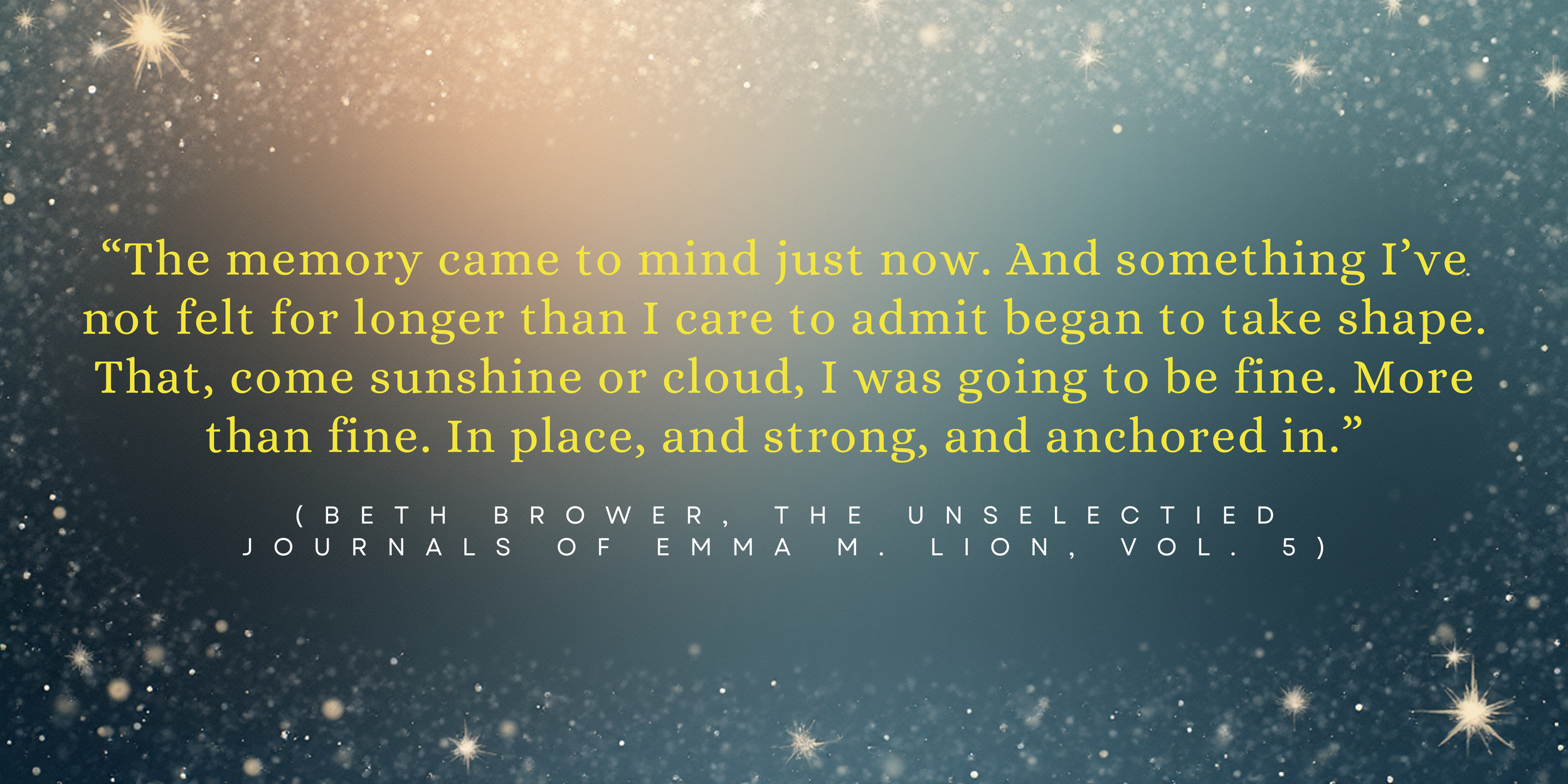 I sped through the Emma Lion series this fall in my continuing quest to read all the books. In the fifth volume, the main character, Emma, is grappling with the reality that her grief over losing the man she loved will always be with her even as she prepares for the goodness of the Christmas season. She finds herself “in place, and strong, and anchored in.” I am like sweet Emma—feeling the grief of many things lost this year but also stable and safe and fine.